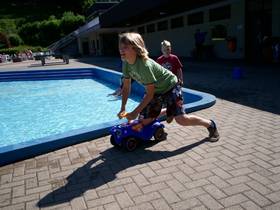 Zwischendurch hatten immer alle Gelegenheit, das Freibad zu nutzen. Um hier den Spaßfaktor zu erhöhen, hatten die Bürener DLRG-Kameraden eine aufblasbare Wasserrutsche organisiert, die großen Zuspruch fand.