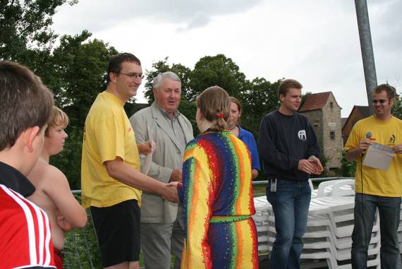 Auch die Meisterschaften wurden dann noch von einem Regenschauer unterbrochen. Doch die Läufe konnten bei Sonnenschein durchgefürht werden. Sicher hätten sich die Organisatoren für die geleistet Arbeit etwas mehr Beteiligung gewünscht. Aber auf Grund des schlechten Wetters war dies so abzusehen. Wenn im nächsten Jahr zum 10. mal um die Pokal gekämpft wird, sollten vielleicht doch auch mehr Schwimmer der DLRG wieder am Start sein. Immerhin gibt es ja schöne Pokale für die Sieger und für jeden eine Urkunde.
